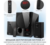 "Акустическая система 5.1 ELTRONIC HOME SOUND Режимы воспроизведения: - Bluetooth - Внешний накопитель - Aux, HDMI ARC, Optical - FM Мощность: - RMS 100 Ватт - PMPO 1000 Ватт Питание: - Сеть 220V Разъемы: - USB - SD - Auх тюлпан - ARC in - Optical in Комплектация: - Комплект соединительных проводов - Пульт Д/У - Инструкция на Русском языке Размер упаковки: Ширина - 42 см Высота - 38 см Глубина - 36 см Дополнительно: Встроенный MP3 плеер Управление плеером прямо на колонке Led дисплей Сенсорное управление"
