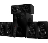 Акустическая система, суммарная мощность (RMS), Вт 125, диапазон частот FM-тюнера, Мгц 87,0 – 108,0, Вт 75 (5 х 15), встроенное FM-радио, информационный VFD-дисплей, встроенный проигрыватель, Bluetooth, материал корпуса - дерево (MDF), встроенные часы, пульт.