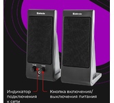 Акустическая система, мощность (RMS) - 6 Вт, мощность сателлитов (RMS) 2х3 Вт, диапазон частот - 100- 18000 Гц, 3,5-мм джек, материал корпуса - МДФ.