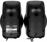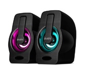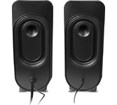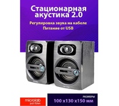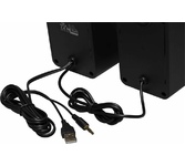 Акустическая система 2.0, выходная мощность (RMS), Вт 6 (2 х 3), частотный диапазон, Гц 80 – 20 000, размеры динамиков, мм O 60, напряжение питания USB / DC 5V, материал корпуса ABS-пластик, система совместима с PC, DVD/Media-проигрывателями, мобильными устройст- вами и др. источниками звука, питание через USB-порт ПК, ноутбука или блок питания 5V DC, регулировка уровня громкости, индикатор питания, размеры изделия, мм 76 х 175 х 72