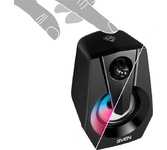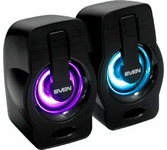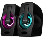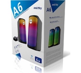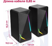 Акустическая система с динамической RGB подсветкой, выходная мощность (RMS), Вт - 6 (2 х3), частотный диапазон, Гц 100 – 20 000, размеры динамиков, мм - O 50, напряжение питания USB / DC 5V, номинальный ток потребления, А - 0,04, материал корпуса - пластик, размеры изделия, мм - 78 х 119 х 79