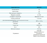 2.0, 6 ВТ RMS (3 ВТ х 2), 120-20000 ГЦ,4 Ом, сигнал/шум >65 Дб, 3,5 мм стерео, пульт ДУ, управление громкостью, 100х130х150 мм, 5В, 1А