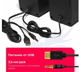 Тип: полочная акустическая система Звуковая схема: стерео, 2.0 Акустическое оформление: фазоинверторного типа Расположение порта фазоинвертора: тыл Суммарная выходная мощность (RMS): 10 Вт Мощность сателлитов (RMS): 2 х 5 Вт Диапазон частот: 80–20000 Гц Размер динамиков: 2 х 3 " Разъем для наушников: 3.5 мм jack Вход для микрофона: 3.5 мм jack Материал корпуса: МДФ Регуляторы: общая громкость Питание: от USB, 5 В Длина кабеля питания: 0.6 м Длина AUX-кабеля: 0.6 м Длина кабеля между сателлитами: 0.8 м Цвет: чёрный Гарантийный срок: 6 месяцев ROHS / CE: Да