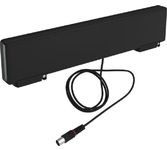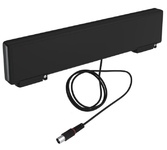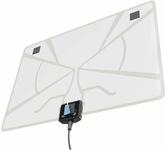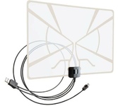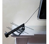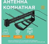 Комнатная цифровая активная антенна, питание от TV или ресивера, коэффициент усиления 35дБи, волновое сопротивление 75 Ом, длина кабеля 1,2 м, размер 315х75х32 мм, масса 0,23 кг.