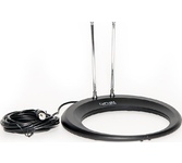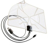 Антенна комнатная, диапазоны принимаемых частот: FM 88-108 МГц VHF 40-230 МГц; UHF 470-862 МГц; коэффициент усиления: 0-36 дБ (с регулировкой).