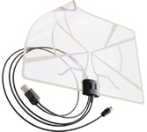 Антенна комнатная, активная, диапазон ДМВ, расстояние до телепередатчика, не более, км: 20, коэффициент усиления, макс., дБи, 21-69 канал: 33, напряжение питания, В: 5,волновое сопротивление, Ом: 75, усилитель, блок питания, питание антенны - напрямую от сетевого адаптера с USB-гнездом, длина кабеля - 2 м, размеры в сборе, мм: 260х170х40.