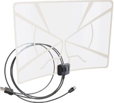 Антенна комнатная, активная, диапазон ДМВ, расстояние до телепередатчика, не более, км: 20, коэффициент усиления, макс., дБи, 21-69 канал: 33, напряжение питания, В: 5,волновое сопротивление, Ом: 75, питание антенны - от USB инжектора, длина кабеля - 2 м, размеры в сборе, мм: 260х170х40.