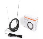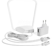 Активная комнатная антенна, для цифровых телевизионных сигналов DVB-T, DVB-T2, принимаемый диапазон: VHF, UHF, Коэффициент усиления до 25дБ, источник питания - коаксиальный кабель или адаптер питания