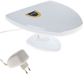 Активная комнатная антенна, для цифровых телевизионных сигналов DVB-T, DVB-T2, принимаемый диапазон: VHF, UHF, Коэффициент усиления до 30дБ, источник питания - коаксиальный кабель или адаптер питания