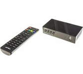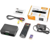 Декодируемый сигнал DVB-T2/T и DVB-C (прием открытых каналов) Разрешение видео: 576i, 576p, 720p, 1080i, 1080p (Full HD) Поддержка форматов: AVI, MKV, MOV, TS, VOB, MP4, MPEG, DAT, JPEG, BMP, SRT, JPG Поддержка видео кодеков: MPEG2, MPEG4, H.264, SD, HD, MP, HP L4.1 Поддержка аудио кодеков: MPEG1, MPEG2, 32/44.1/48KHz USB 2.0 (носители до 1TB) Поддержка файловых систем FAT/FAT32/NTFS Функции: запись (PVR), Time Shift (сдвиг по времени), телегид EPG, TeleText, Subtitle, Fav Group, NIT Таймер записи в назначенное время Экранное меню на русском и английском языках Разъемы: антенный вход, HD OUT, 2хUSB, AV, DC IN ПДУ 132x38мм Питание: от сети через адаптер 5 В, 2 А Цвет: черный WiFi-адаптер в комплект не входит