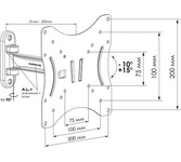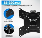 Кронштейн для телевизора. Тип: наклонно-поворотный Назначение: для тел-в Цвет: черный глянец Мин. диагональ: ТВ 17 Макс. диагональ: ТВ 42 Максимальный вес оборудования: 20 кг Угол наклона: -15°/+15° Угол поворота: 180° Установка: настенный Расстояние от стены до ТВ: 85-392 мм Поддержка крепления VESA 75х75: да Поддержка крепления VESA 100х100: да Поддержка крепления VESA 200х200: да