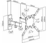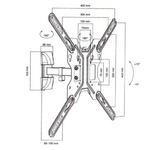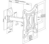 Для использования с телевизорами диагональю 37"-86", весом до 45кг. Расстояние телевизора от стены 53мм. VESA 75x75, 100x100, 100x150, 150x100, 100x200, 200x100, 150x150, 200x200, 200x300, 300x200, 200x400, 400x200, 300x300, 300x400, 400x300, 600x200, 500x300, 400x400, 600x300, 500x400, 600x400. Возможен подъем на 5 и наклон на 15 градусов.