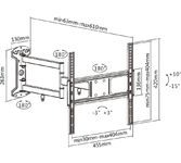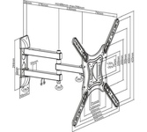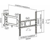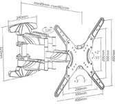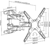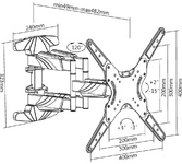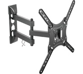 Наклонно-поворотный кронштейн со свободным наклоном. Открытая конструкция обеспечивает повышенную вентиляцию и облегчает доступ к проводам. Для использования с телевизорами 32"-55" весом до 30кг. Расстояние телевизора от стены 62~422мм. VESA 100x100,200x100,200x200,300x200,300x300,400x200,400x400. Возможен наклон до 10 градусов и подъем до 3 градусов. Поворот влево и вправо на 90 градусов .