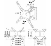 Консольный стальной кронштейн с наклоном и поворотом 4 степени свободы: Угол наклона: +/-15°, Угол поворота: 180°,Вращение: 360° и Смещение. Расстояние от стены 50-190 мм vesa 75x75 - 100x100 до 25кг.