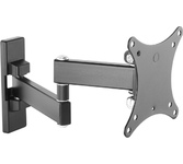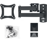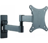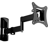 Технические характеристики: Тип: наклонно-поворотный (одно колено) Назначение: для LED/LCD/PLASMA телевизоров Цвет: черный Угол наклона: -10°/+3° Угол поворота: 180° Мин. диагональ: ТВ 13 дюймов Макс. диагональ: ТВ 27 дюймов Максимальный вес оборудования: 20 кг Тип монтажа: настенный Расстояние от стены до кронштейна: 44 -192 мм Поддержка крепления стандарта VESA: 75х75/100х100 Крепление: в комплекте