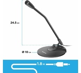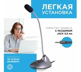 Микрофон компьютерный, тип подключения - проводной, разъемы 3,5-мм джек, частотный диапазон -50-15000 Гц, чувствительность - 54 дБ, импеданс - 32 Ом, материал корпуса - пластик, длина кабеля - 1,5 м.