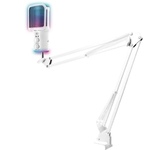 Микрофон проводной c пантографом Тип микрофона: конденсаторный, Диаграмма направленности: кардиоида, Подключение Type-C - USB A / Type-C, Jack 3,5 мм на наушники, Подсветка, шумоподавление, Кнопка отключения зввука микрофона, Кнопка управления подстветкой, Регулировка звука на корпусе, Регулировка эха на корпусе, Материал: металл + пластик, Размеры микрофона: 5 * 15* 5 см Цвет: белый