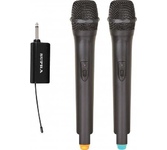 Два беспроводных микрофона. Тип микрофона - динамический. Несущая частота: VHF 174 - 230 МГц. Чувствительность: 108 дБ. Динамический диапазон усилителя: 100дБ. Диаграмма - кардиоидная. Номинальное сопротивление: 600 Ом±15%. Частотный диапазон: 20 - 20000 Гц. Уровень выходного сигнала: 500 мВ. Дистанция приема: до 50 м. Доступные для выбора каналы: 2. Размеры микрофона: 245х50 мм.