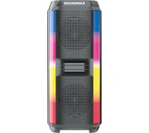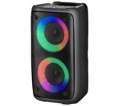 ПОРТАТИВНАЯ АКУСТИЧЕСКАЯ СИСТЕМА Номинальная выходная мощность (RMS): 10 Вт Пиковая выходная мощность (PMPO): 20 Вт Динамики: 2 x 4” Bluetooth 5.4 Поддерживаемые аудиоформаты: MP3 Функция True Wireless Stereo (TWS) Цифровой FM-тюнер (87.5-108 МГц) Воспроизведение с USB 2.0 и microSD карты Аудиовход 3.5 мм jack Встроенная аккумуляторная батарея: 1500 мАч Время работы от аккумулятора до 6 часов* Многоцветная LED подсветка Размеры устройства: 384 х 160 х 156 мм Цвет: черный