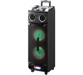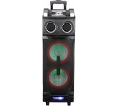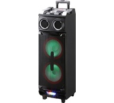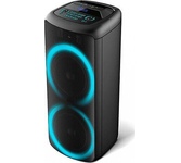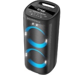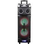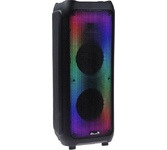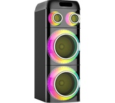 Акустическая система мощность 1000 Ватт с Bluetooth, FM радио, и TWS, Пиковая музыкальная мощность (PMPO) 1000Вт, Выходная мощность (RMS) 100Вт, Материал корпуса MDF + пластик, Светодиодный дисплей, Настраиваемая светодиодная подсветка с функцией отключения, Частотный диапазон: 45Hz-20KHz, FM тюнер: 87,5 - 108МГц, Размеры динамиков, НЧ динамик - 8" *2шт, твитер - 3" *2шт, Bluetooth V5.3, Воспроизведение музыки с носителей памяти - USB, USB, 2 входа для микрофона, вход для гитары, AUX, TF CARD, Регулировка громкости микрофона, уровня эхо, функция регулировки эквалайзера, Функция TWS, Встроенная аккумуляторная батарея 12В, 4500 мA, Внешний источник питания: AC100-240V Дистанционный пульт управления, Размеры изделия, 310*310*880 мм, Вес: 11 кг