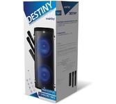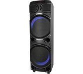 Мидисистема с Bluetooth, Максимальная мощность: 1000 Вт, RMS: 150 Вт, Корпус из МДФ, 7 цветная RGB подсветка, Микрофон проводной в комплекте, Воспроизведение музыкальных файлов в формате MP3/WMA/FLAC/WAV/APE/AAC, FM тюнер, TWS функция, Полнофункциональный пульт дистанционного управления, Функция караоке, 2 входа для подключения микрофона, Регулировка низких и высоких частот, Эхо-эффект канала микрофона, USB разъем, TF разъем, Двухканальный линейный вход, Питание: ~100 - 240 В, 50-60 Гц, Встроенный аккумулятор:12 Вольт, 7000 мАч