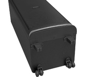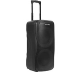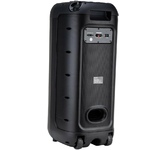 Мощность: 200 Вт. Количество динамиков, диаметр: 2 х 254 мм. Функционал: Bluetooth, FM-радио, MP3-плеер (USB / MicroSD), AUX, управляемая RGB-подсветка, TWS. Емкость аккумулятора / напряжение: 8000мАч / 11 В. Зарядка от сети 220В напрямую (без адаптера). Время автономной работы: до 8 часов. В комплекте: кабель с вилкой 220В, 2 микрофона, беспроводной пульт ДУ, инструкция пользователя. Деревянный корпус с двумя фазоинверторами. Значительно лучше пластика гасит вторичные колебания внутри корпуса, делая звук чище. Размеры колонки (без упаковки): 1010мм х 340мм х 350мм. Ролики с фиксаторами. Приглушение голоса, запись с микрофонов на флешку, порт USB для зарядки устройств.