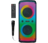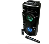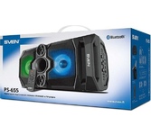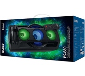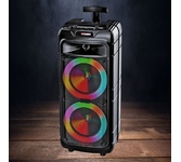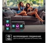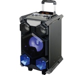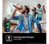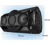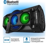 Многофункциональная портативная акустическая система с подсветкой, Bluetooth, LED-дисплей, встроенный эквалайзер, встроенное FM-радио, выходная мощность (RMS), Вт 65 (2 x 32.5), частотный диапазон, Гц 45 – 22 000, диапазон частот тюнера, МГц - 87.5 – 108, размеры динамиков, мм - ВЧ: O 70, НЧ: O 140, воспроизведение музыки с носителей памяти USB, microSD, источник питания литий-ионный aккумулятор: 4400 мA · час (2 шт.) / USB: DC 5 V, тип соединения Bluetooth, проводной, радиус действия, м - до 10, размеры изделия, мм 470 х 240 х 240, вес - 4,35 кг.
