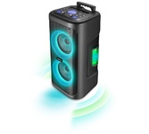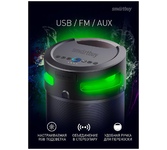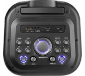 Номинальная выходная мощность (RMS): 80 Вт Пиковая выходная мощность (PMPO): 800 Вт Динамики: 2 x 6.5” + 1 x 1.5” Bluetooth 5.0 Поддерживаемые аудиоформаты: MP3, WAV, WMA, FLAC, SBC Функция True Wireless Stereo (TWS) Цифровой FM-тюнер (87.5-108 МГц) Воспроизведение с USB 2.0 и microSD карты Аудиовход 3.5 мм jack Вход для микрофона 6.35 мм jack Функция караоке Встроенная аккумуляторная батарея: 3000 мАч Время работы от аккумулятора до 8 часов* LED дисплей Многоцветная LED подсветка Размеры устройства: 562 х 266 х 256 мм Цвет: черный