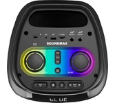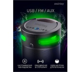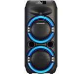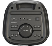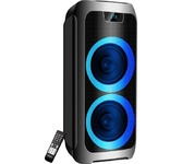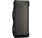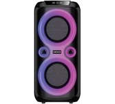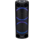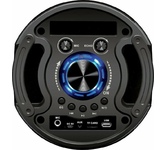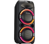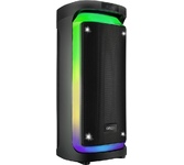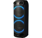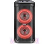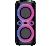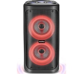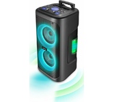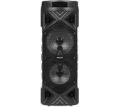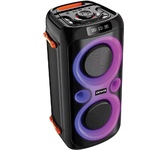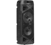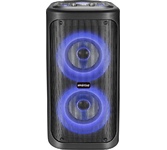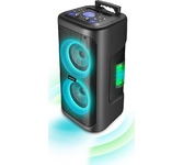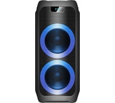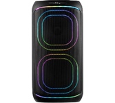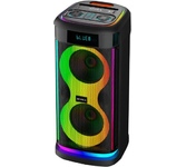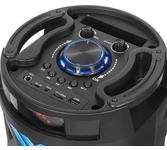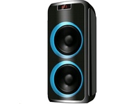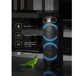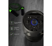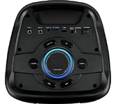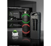 Номинальная выходная мощность (RMS): 80 Вт Пиковая выходная мощность (PMPO): 800 Вт Динамики: 2 x 6.5” + 1 x 1.5” Bluetooth 5.0 Поддерживаемые аудиоформаты: MP3, WAV, WMA, FLAC, SBC Функция True Wireless Stereo (TWS) Цифровой FM-тюнер (87.5-108 МГц) Воспроизведение с USB 2.0 и microSD карты Аудиовход 3.5 мм jack Вход для микрофона 6.35 мм jack Функция караоке Встроенная аккумуляторная батарея: 3000 мАч Время работы от аккумулятора до 8 часов* LED дисплей Многоцветная LED подсветка Размеры устройства: 562 х 266 х 256 мм Цвет: черный