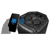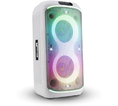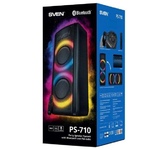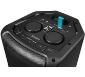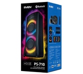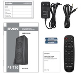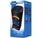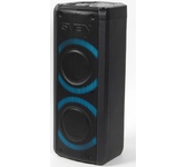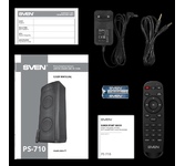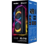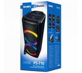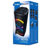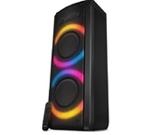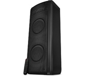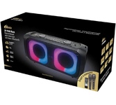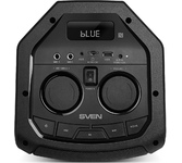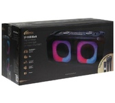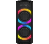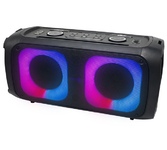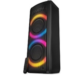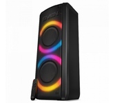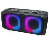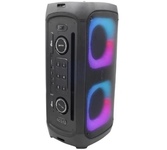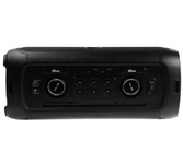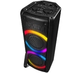 75 Вт, 6,5” + 6,5” + твиттер, Bluetooth, 30 Гц -18 КГц, FM-радио, RGB-подсветка, AUX, USB, microSD (до 32 Гб, MP3), дисплей: LED, до 6 часов работы, 2 микрофонных входа под Джек 6,3мм, эквалайзер (5 режимов), 3600 мАч, 9 В, вход 9 В, 28*24,5*59,4, пластик, черный