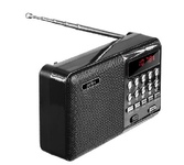 Портативный радиоприёмник, выходная мощность - 3 Вт, питание - 5В USB ,FM (87,5 -108 МГц, автопоиск), разъемы USB и micro SD, LED-дисплей, гнездо для наушников, телескопическая антенна, материал корпуса - пластик, размеры (мм) : 115х78х37.
