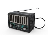 Компактный радиоприёмник с Bluetooth в.5.4 в ретро-стиле, работает в трёх радиодиапазонах, включая ФМ. Воспроизведение мр3 файлов с карт micro SD или USB флеш, встроенный аккумулятор, питание: Type-C Описание Портативный радиоприёмник, внешний вид выдержан в классическом ретро дизайне. Отвечает всем требованиям к современной радиотехнике. Телескопическая антенна с углом поворота 360о обеспечивает отличный приём эфирного радиосигнала в трёх диапазонах: FM (87-108 МГц), AM (522-1728 кГц), SW (5.9-18.0 МГц). Устройство поддерживает Bluetooth версии 5.4, подключаясь к смартфону, планшету, игровой приставке и т.д. в качестве Bluetooth колонки. Также способно работать в режиме MP3-плеера, воспроизводя аудиозаписи с карты micro SD или USB-флэш носителей. Таким образом, радиоприёмник предлагает несколько вариантов воспроизвести ваши любимые треки в формате оффлайн, например, можно включить сказки Вашему ребенку с хорошим звуком, где бы Вы ни находились, записав MP3 предварительно на носитель памяти и зарядив аккумуля