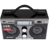 Тюнер аналоговый, УКВ/СВ/КВ диапазоны (УКВ 64-108МГц СВ 530-1600КГц КВ 8,0-16,0МГц), 2 динамика (монозвук) мощностью Ф64mm/4Ом/3W*2шт, питание 220В, батарейки R20*4шт (не в компл.), размер 220*135*135мм, возможность воспроизведения с USB, SD, телескопическая антенна, разъем под наушники, ручка для переноски.