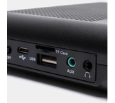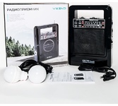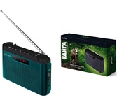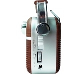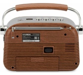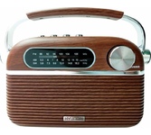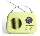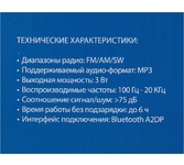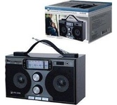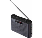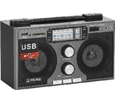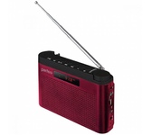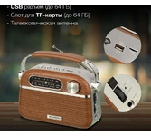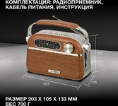 Радиоприемник в классическом корпусе имеет стильный внешний вид, удобное колесико-регулятор радиоволны и кнопки управления на верхней грани устройства. Поворотная телескопическая антенна принимает сигнал в 2-х самых популярных диапазонах (УКВ и FM), также предусмотрена возможность выборочного запоминания 10 станций. Есть встроенный MP3-плеер, который воспроизводит MP3-файлы с карты памяти microSD или USB-накопителя. Аудиовход AUX, разъем для наушников и поддержка режима USB-аудио расширяют функционал приемника. Диапазон воспроизводимых частот: 90–18000 Гц. Выходная мощность: 3+3=6 Вт (RMS). Аккумуляторная батарея: встроенная 1800 мАч (питание от USB). FM-радио: 65,9–74 УКВ / 87,5–108 FM. Габаритные размеры: 140х33х100 мм. Вес: 270 г.