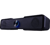 Компактные размеры - Акустическая система займет минимум места на рабочем столе Светодиодная подсветка регулятора громкости Питание от порта USB - Колонки не требуют сетевого источника питания. Просто подключите колонки к USB-разъему компьютера и наслаждайтесь звуком. Колонки необходимо подключить также к аудиоразъему вашего персонального компьютера, поскольку данная модель не оборудована интегрированной звуковой картой Резиновые ножки предотвращают скольжение по поверхности стола