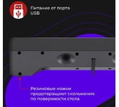 Питание от порта USB - Колонки не требуют сетевого источника питания. Просто подключите колонки к USB-разъему компьютера и наслаждайтесь звуком. Колонки необходимо подключить также к аудиоразъему вашего персонального компьютера, поскольку данная модель не оборудована интегрированной звуковой картой Светодиодная подсветка Регулятор громкости звука со встроенным выключателем Резиновые ножки предотвращают скольжение по поверхности стола