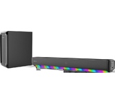 2.1 Саундбар с LED подсветкой и беспроводным сабвуфером, 450Вт Максимальная выходная мощность, 90 Вт Выходная мощность RMS, сопротивление 4Ом, 6.5" Беспроводной сабвуфер Разноцветная LED подсветка звуковой панели с 7-ю режимами работы, Беспроводная передача сигнала по Bluetooth, Цифровой HDMI (ARC) и Optical вход, Аудио форматы: MP3/WMA/FLAC/WAV, LED дисплей, Пульт управления, Поддержка воспроизведения с USB накопителя, Линейный вход, Размер звуковой панели: 941 x 80 x 88 мм, Размер сабвуфера: 192 x 310 x 375 мм