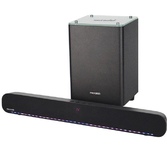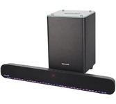Стандарт 2.1. Суммарная выходная мощность 100 Вт. Потребляемая мощность в режиме работы 57 Вт. Выходная мощность сабвуфера 200 Вт. Размер сабвуфера 171x320x252мм. Вес сабвуфера 4.2 кг. Материал корпуса сабвуфера MDF. Поддержка форматов файлов MP3. Поддержка Bluetooth ДА. HDMI выход 1. Оптический цифровой вход 1. Разъем USB ДА. Тип разъема USB1 х USB 2.0 (тип A). Цвет черный. Материал корпуса пластик. Размер основого блока 720x63x87мм. Вес основного блока 1.65 кг.