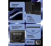 Размер 32", Разрешение 1366Х768,Частота 60гц, Контрастность 3000:1,Время отклика 8,5мс,Угол обзора 178х178, DVB-T2,DVB-C, Dolby AC-3, CI+, Smart 1G/8G, ,безрамочный, Android 13, Яндекс, Порты *2/HDMI ,*2/USB 2.0, LAN (RJ-45) ,мощность динамиков 2х7 вт ,Центральная металлическая подставка.VESA 200*100