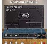 32" (81см),HD READY 1366x768, цифровой тюнер DVB-T2/DVB-C/S2,(.H.264/MPEG4/2/1/VC1/DivX) ,Запись ТВ программ , Электронный Телегид, Отложенный просмотр; слот CI+ для модуля условного доступа, формат экрана: 16: 9, Авто динамическая контрастность: 70000: 1 , яркость: 230 кд/м2, угол обзора (Г/В): 178°/178°, время отклика: 8 мс, Частота обновления экрана - 50Гц, 3D цифровой фильтр, русское, английское меню, телетекст, аудио: 2х6 Вт, входы: антенный ,разъемы для подключения: USB, 2 HDMI, копмозитный AV, компонентный YPbPr, ., VGA, HDMI,ПК аудио,SCART вход,SPDIF, вход для наушников, вход CI+ (common interface), вход для антенны