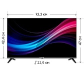 32" (81 см), USB медиаплеер с поддержкой MKV видео, цифровой тюнер DVB-T/T2/S/S2/C (H.264 MPEG 4\1\2 Video), Dolby Digital +, DTS, NTFC, формат экрана: 16: 9, формат изображения: 16: 9; 4: 3; 14: 9; авто, разрешение экрана: потенциальное 1366 (Г) x 768(В), динамическая контрастность: 100000: 1, яркость: 220 кд/м2, угол обзора (Г/В): 178°/178°, время отклика: 8 мс, 16,7 миллионов цветов, воспроизводит формат HDTV 1080p/1080i/720p/576p/576i/480p/480i, 3D цифровой фильтр, русское, английское меню, телетекст, аудио: 2 х 6 Вт, разъемы для подключения: аудио/видео вход, 2 USB, 3 HDMI, SPDIF, VGA, аудиовход для ПК, вход для наушников, вход для антенны, вход CI (common interface), размеры: 730*482*220 мм, VESA 200х200 мм, питание: 100-240 В, 50/60 Гц.