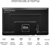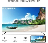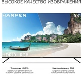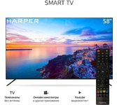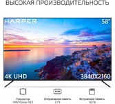 58" (148 см), 3840x2160 (ULTRA), SMART TV (AOSP 9.0 1,5Gb RAM) , USB медиаплеер с поддержкой MKV видео, цифровой тюнер DVB-T2/DVB-C/DVB-S2 (H.265/H.264/MPEG4/2/1/VC1/DivX), встроенный приемник спутниковых каналов и слот CI+ для модуля условного доступа, функция MHL, формат экрана: 16: 9, формат изображения: 16: 9; 4: 3, Авто, разрешение экрана: 4K 3840x2160, динамическая контрастность: 140000: 1, яркость: 300 кд/м2, угол обзора (Г/В): 178°/178°, время отклика: 8 мс, 1 миллиард цветов, воспроизводит формат HDTV Ultra HD/1080p/1080i/720p/576p/576i/480p/480i, 3D цифровой фильтр, русское, английское меню, телетекст, аудио: 2х8 Вт, навигация по сети Интернет без использования персонального компьютера, встроенный контроллер беспроводного доступа Wi-Fi, разъемы для подключения: 2 USB, 3 HDMI, Ethernet порт для подключения к локальной или глобальной сети RJ45, SPDIF, вход для наушников, вход CI+ (common interface), вход для антенны.
