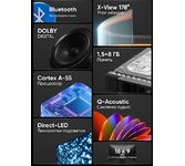 Диагональ: 55" (140 см) Соотношение сторон: 16:9 Разрешение: 3840х2160 Яркость: 320 кд/м2 Контрастность: 4000:1 Угол обзора: 178/178 ° Время отклика: 8 мс Разъемы (вход): HDMI 2.1 х 4, USB 2.0 х 2, антенный, композитный, CI+, аналоговый аудио, Ethernet Разъемы (выход): выход для наушников Изображение: Тип подсветки: HQLED Частота обновления: 60 Гц HDR-Dolby Vision Цифровое шумоподавление MEMC HDR 10 Upscaling 4K UHD Системы вещания: DVB-T2 DVB-C DVB-S2 Система аналогового ТВ: PAL/SECAM Звук: Тип колонок: стерео Суммарная выходная мощность аудио: 30 Вт Dolby Atmos Эквалайзер DBX-TV Объемный звук Dolby Digital Decoding SMART TV : Операционная система: Android TV 11.0 Сетевые функции: Wi-Fi, Bluetooth 5.1 Версия Wi-Fi: 5 Гц Поддержка YouTube Поддержка Google Play Store Голосовой поиск Особенности: Энергопотребление: 165 Вт Цвет лицевой панели: серый Голосовое управление без пульта Far Field Таймер Вкл/Выкл Воспроизведение с USB носителя Родительский контроль Запись на USB HDMI CEC