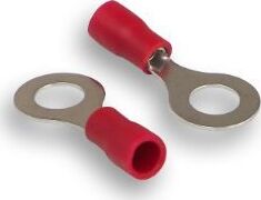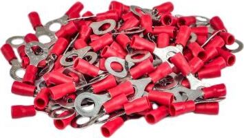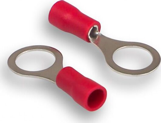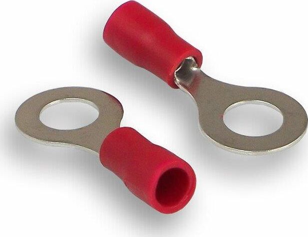 Кольцевой коннектор. Изолированный, красный. Диаметр отверстия: 6,4 mm. Входящий диаметр кабеля: 0,5 — 1,5 mm2. Комплект: 100 шт.