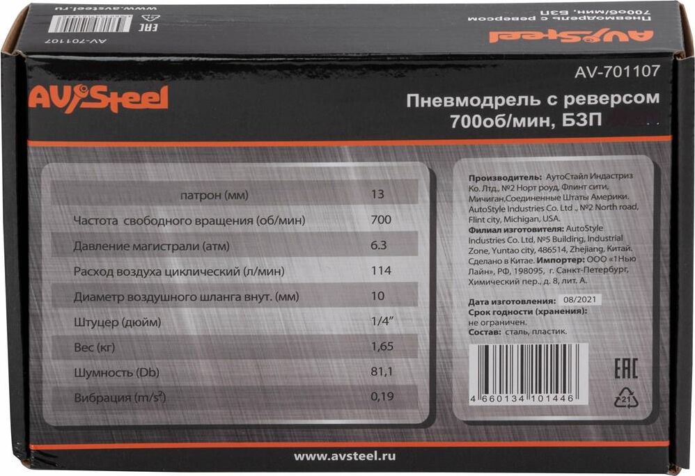 AV Steel (AV-701107) Пневмодрель 700 об\мин, БЗП 13мм