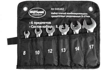 Тип рожковые/накидные Размер min (мм) 8 Размер max (мм) 17 Размер min (дюйм) нет Размер max (дюйм) нет Трещотка есть Покрытие хромоникелевое Материал CrV Количество в наборе 6 шт Класс товара Профессиональный Диэлектрическое покрытие нет Вес нетто 0.462 кг Вид миллиметровый Форма прямой Вид упаковки чехол(сумка)/полотно