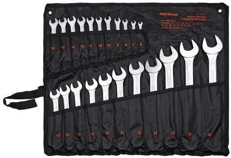 Материал: хромованадиевая высоколегированная сталь. Покрытие: хром/никель. Профессиональный инструмент: да. Тип: Набор ключей. Габариты упаковки (ед) ДхШхВ: 0.25x0.121x0.04. Вес упаковки (ед): 3. Страна производства: Индия. Количество предметов: 22 предмета. Комбинированные ключи, список: 6, 7, 8, 9, 10, 10, 11, 12, 13, 13, 14, 15, 16, 17, 18, 19, 21, 22, 24, 27, 30, 32 мм. Максимальный размер ключа: 32. Минимальный размер ключа: 6. Гарантия: 12 мес.. Система измерения: метрическая. Форма ключа : прямой. Тип ключа: комбинированный. Форма ключа: прямой. Покрытие: хром/никель. Количество предметов: 22 предмета. Тип ключа: комбинированный. Особенности: профессиональный инструмент. Размер ключа: мин. - 6 мм, макс. - 32 мм