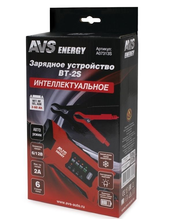 AVS BT-2S Зарядное устройство для автомобильного аккумулятора (2A, 25W) 6/12V