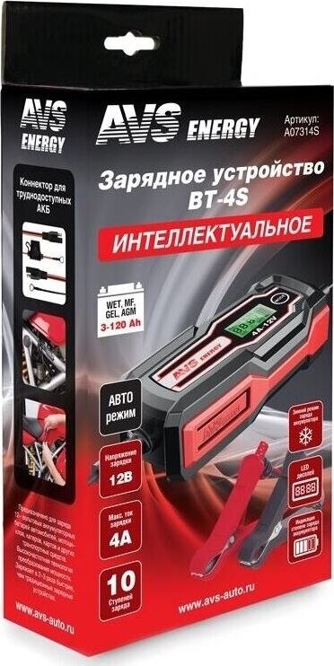 AVS BT-4S Зарядное устройство для автомобильного аккумулятора (4A, 51W) 12V