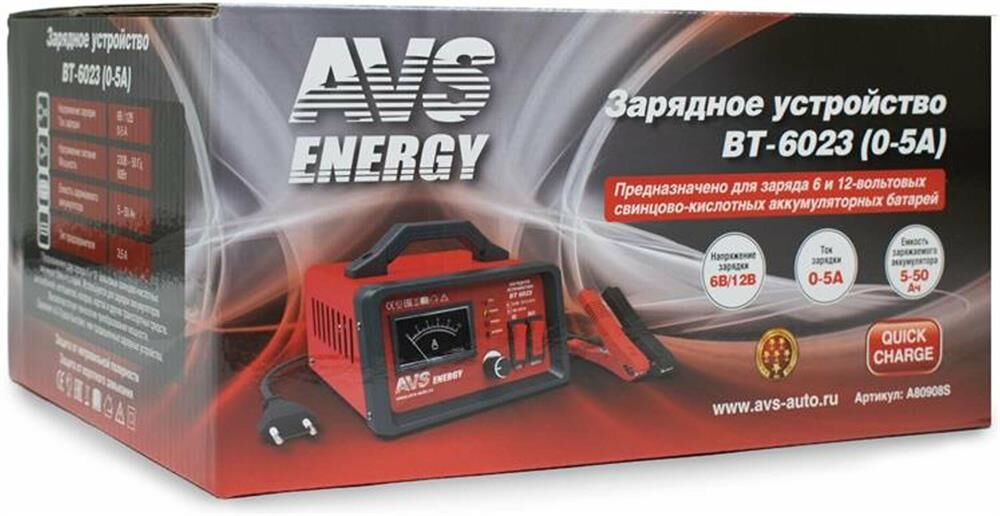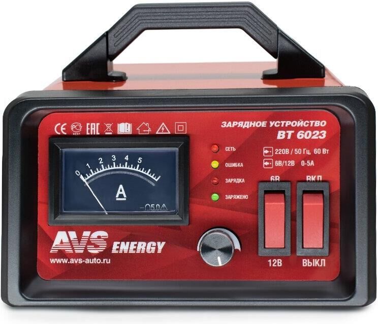 AVS BT-6023 Зарядное устройство для автомобильного аккумулятора (5A) 6/12V